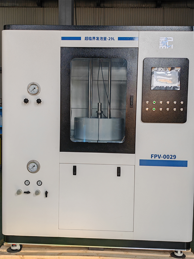 超臨界發泡裝置以氮氣、二氧化碳等作為發泡劑用于TPU、EVA、聚丙烯、聚乙烯、尼龍彈性體等材料的超臨界發泡科學研究,現已證明物理發泡與化學發泡劑相比有更高發泡倍率高,無殘留物,有不燃不爆、無毒、不腐蝕設備、綠色環保及價廉等優點,制備的發泡材料具有泡孔尺寸?。ㄐ∮?0μm),泡孔密度大,泡孔均勻,具有更好的力學性能等。本裝置主要包括:快開式高壓釜、氣源、低溫槽、高溫槽、計量泵、快速放氣裝置等。本裝置已在中科院北京化學所、青島科技大學、四川大學等單位使用。